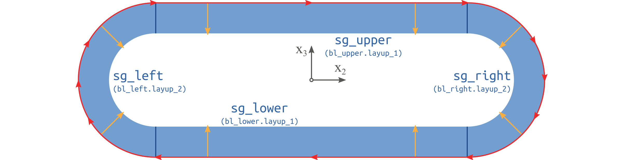 This cross section has two straight walls and two half circular walls.