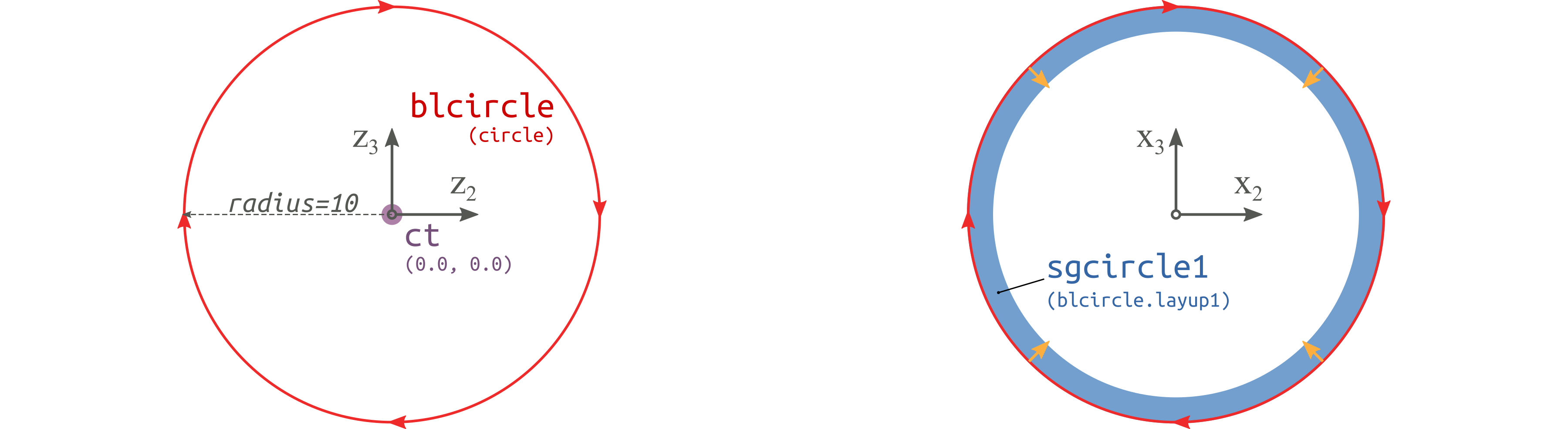 This cross section geometry can be defined easily by a center and a radius.