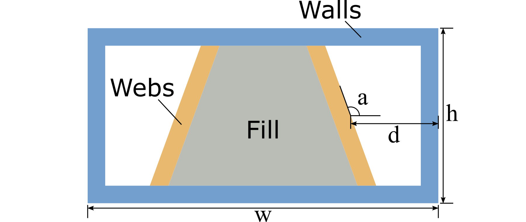 For this example, the first step is trivial. The cross section can be decomposed into three components: the walls, the webs, and the fill.