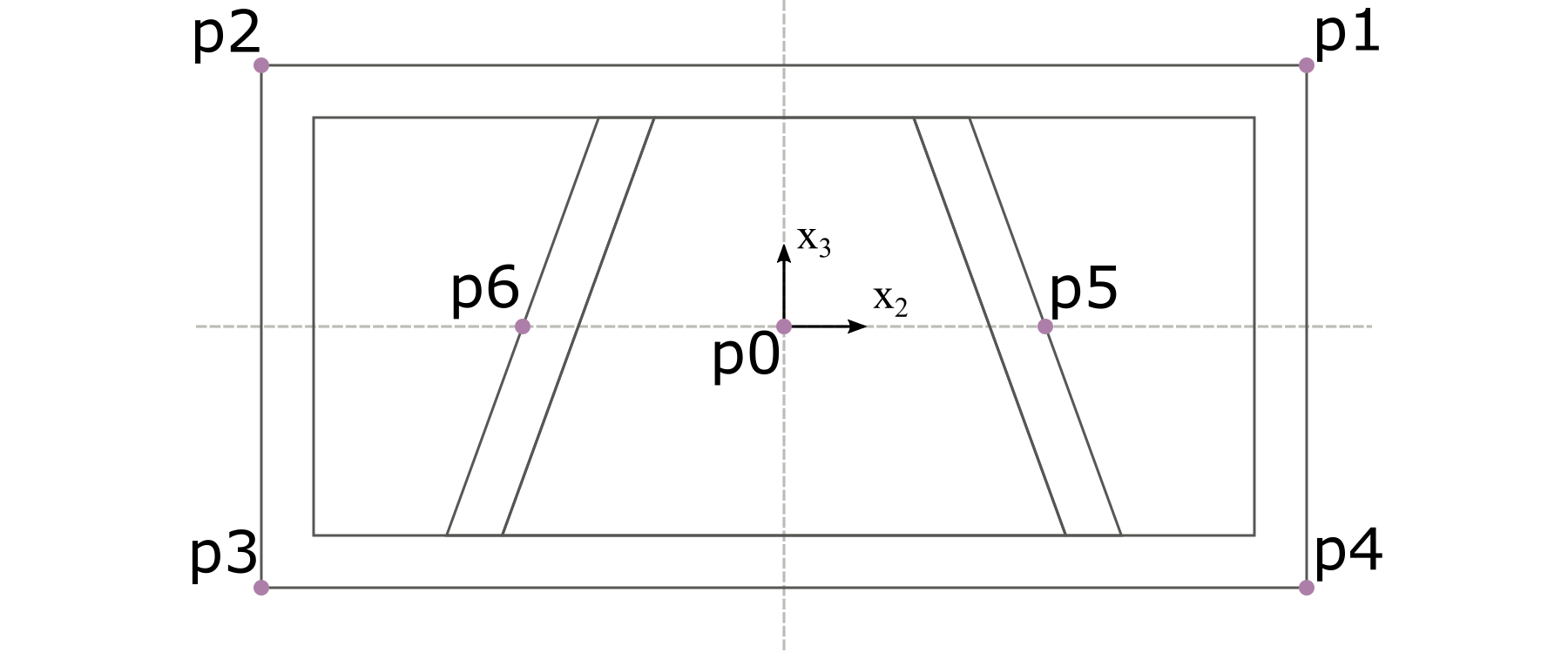 As shown in Fig. 10, seven points are used to define the shape of the cross section. Points p1 to p4 define the walls, p5 and p6 define the webs, and p0 indicates the space which should be filled with some material. The origin of the coordinate system is placed at the centroid of the rectangular. Based on the design parameters \(w\), \(h\) and \(d\), coordinates of all points are found and listed in Table 4.